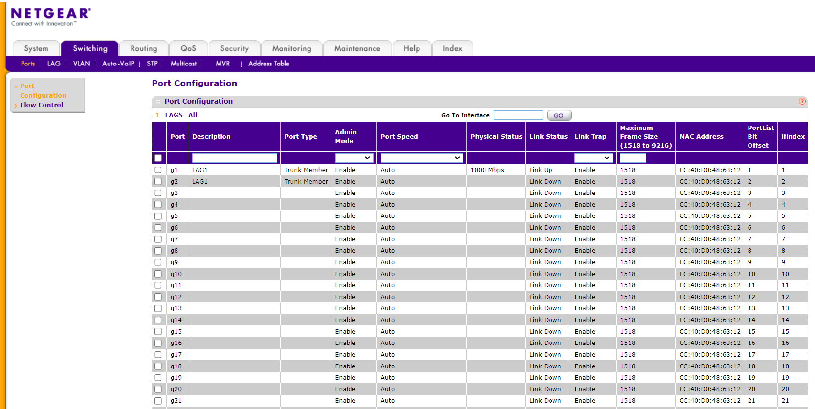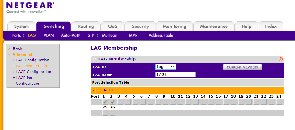 LAG Membership에 들어가면 LAG ID를 정하고, LAG Name을 설정 해주시면 됩니다.