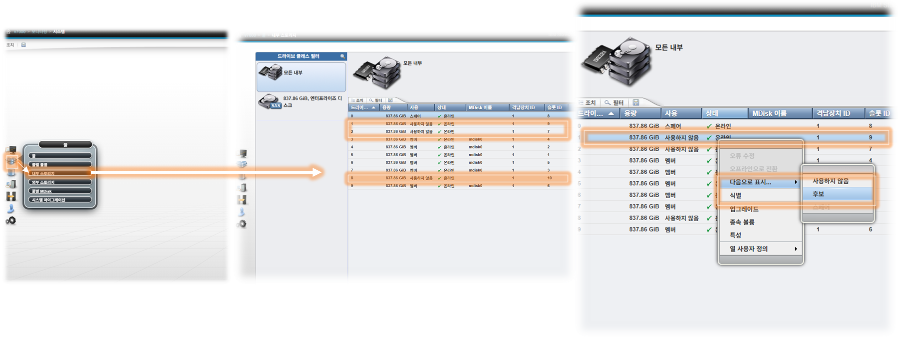 스토리지 본체의 빈 슬롯에 3개의 디스크를 물리적으로 추가합니다.