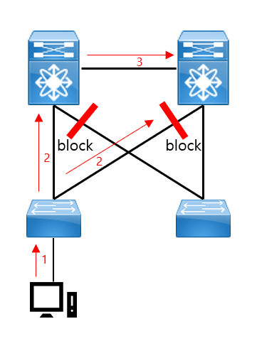 허나 위와 같은 이중화 구성은 네트워크의 looping을 발생시킬 수 있습니다.